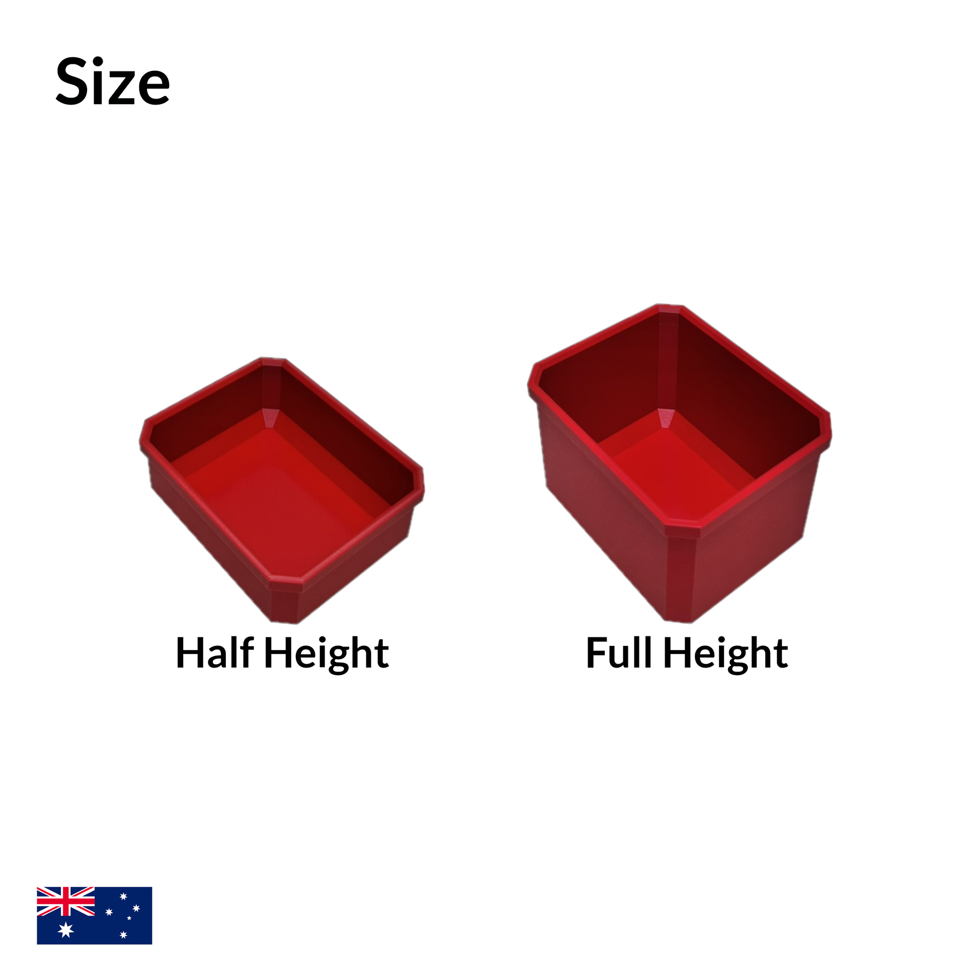 | Half Height Bins | 101mm W x 126mm L x 45mm H |