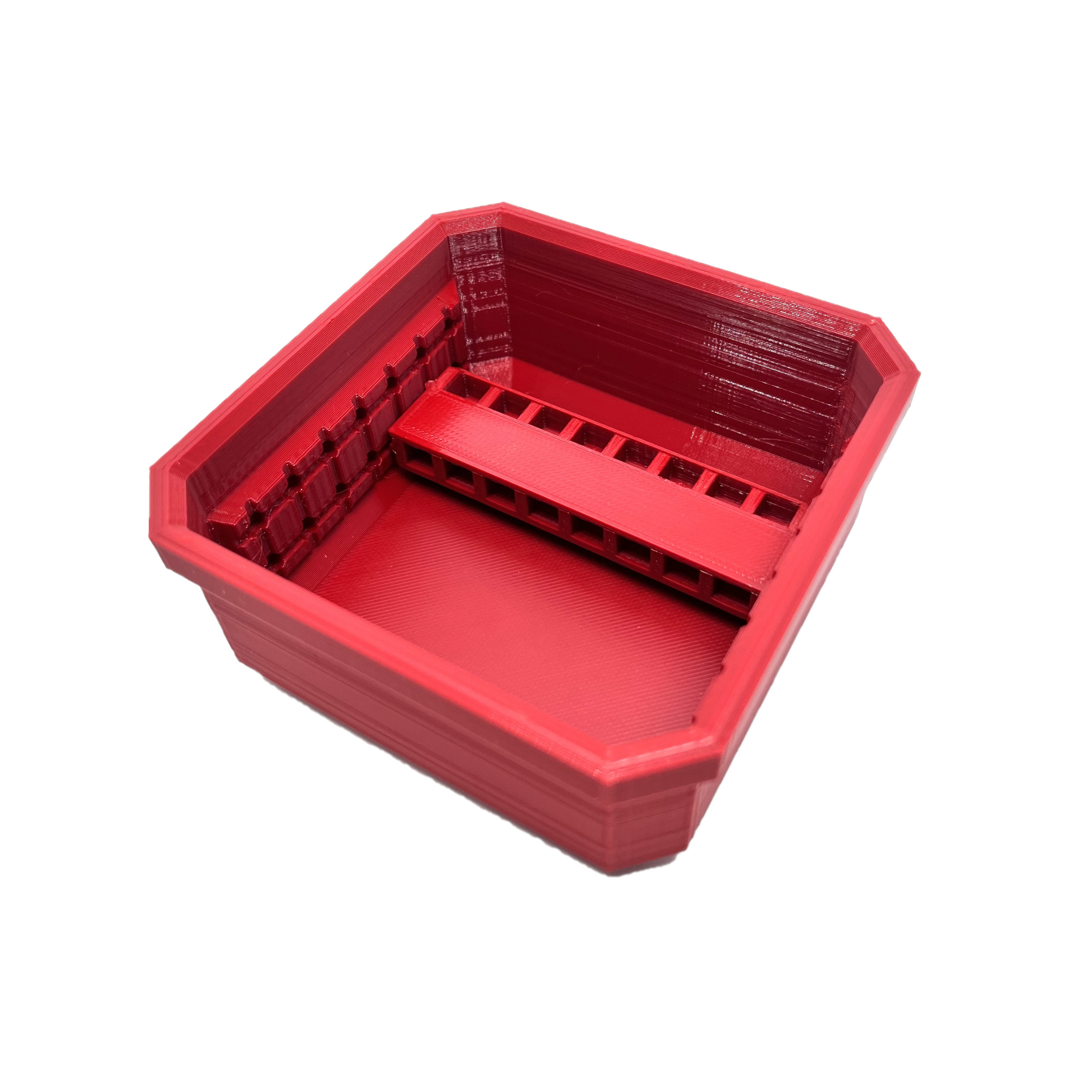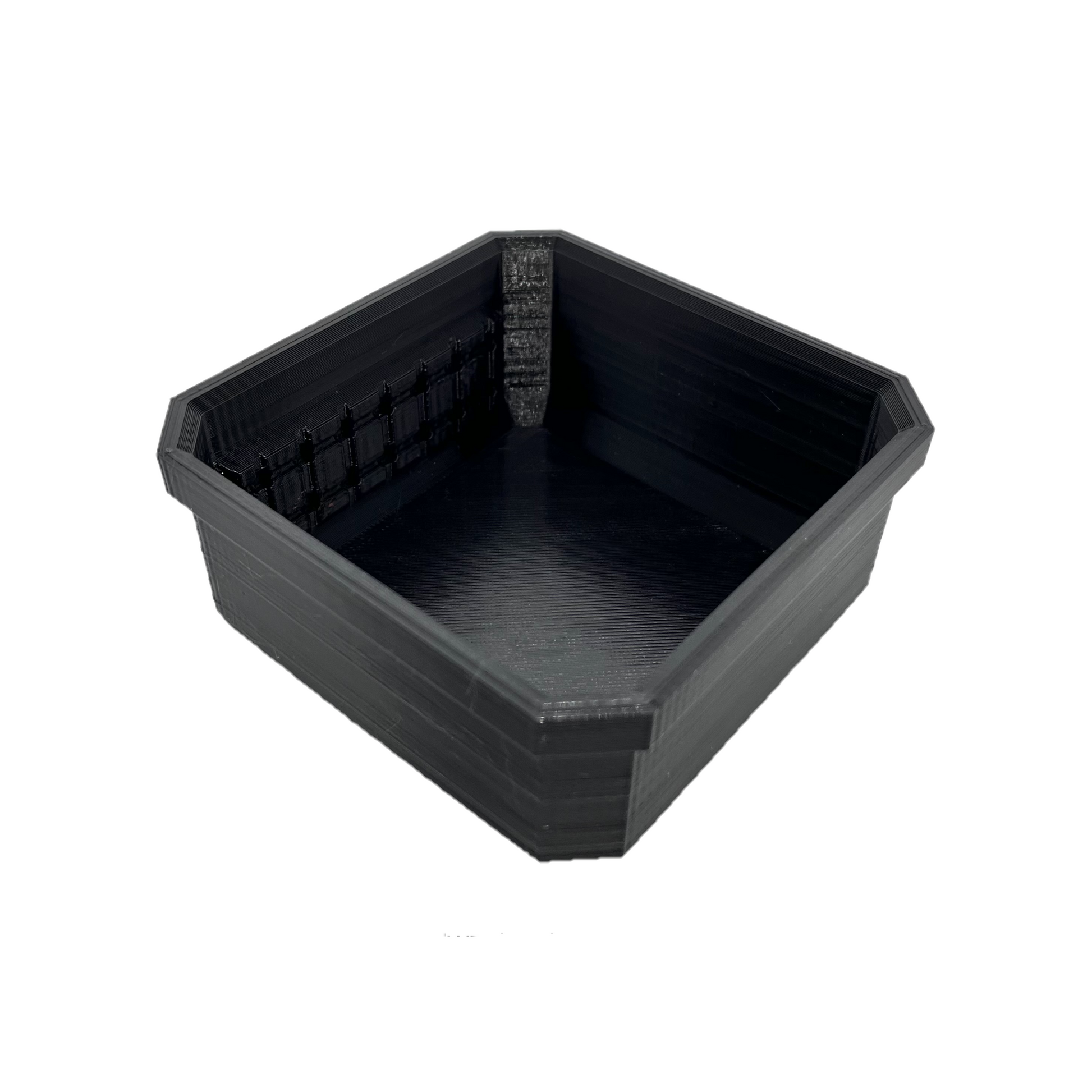 Square bin with bit holder mount for Milwaukee Packout Low Profile Compact Organisers (48228436 and 48228431). Compatible with existing Milwaukee Bit Holders.